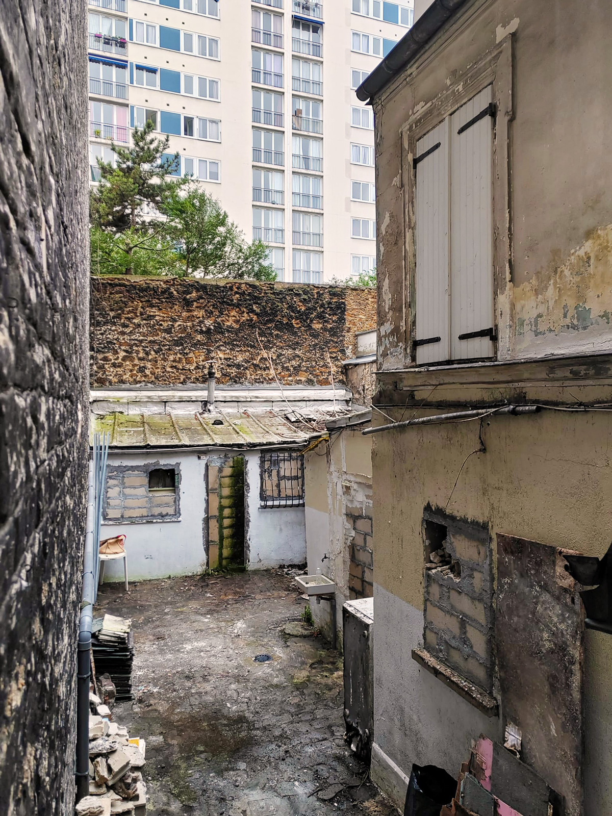 La Maison rue des Poissonniers, située au fond d’une copropriété est un projet de rénovation et de surélévation dans le milieu urbain parisien.